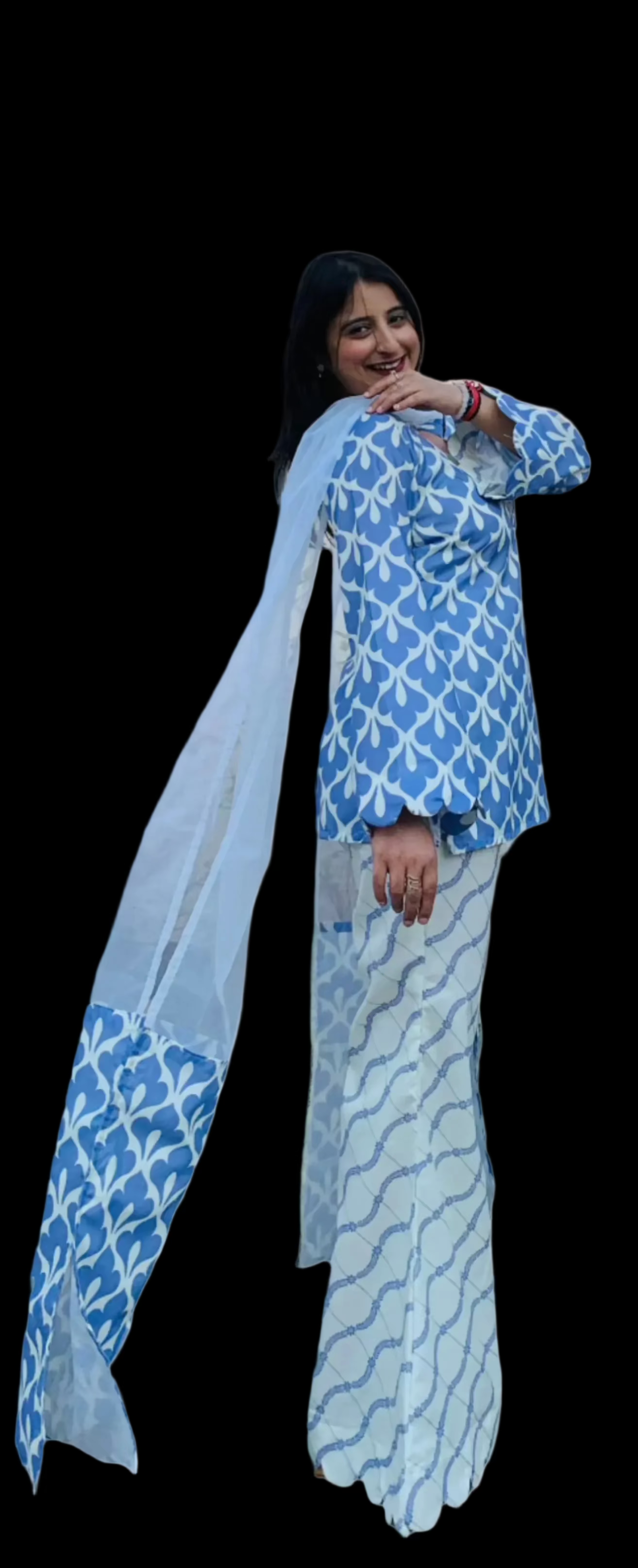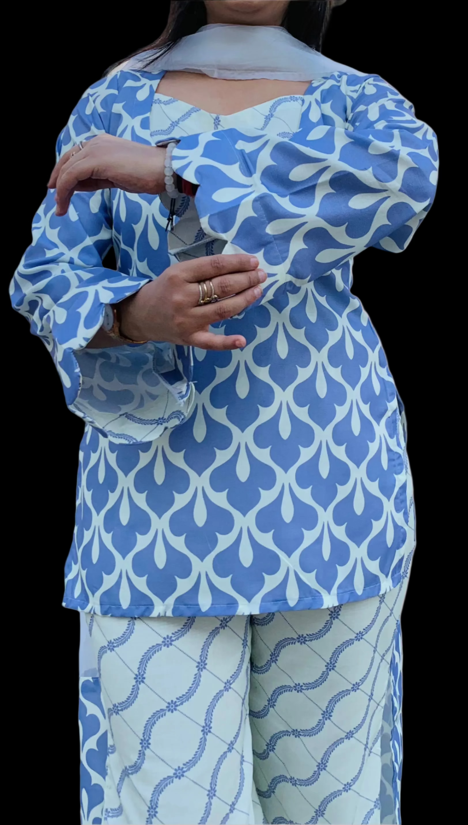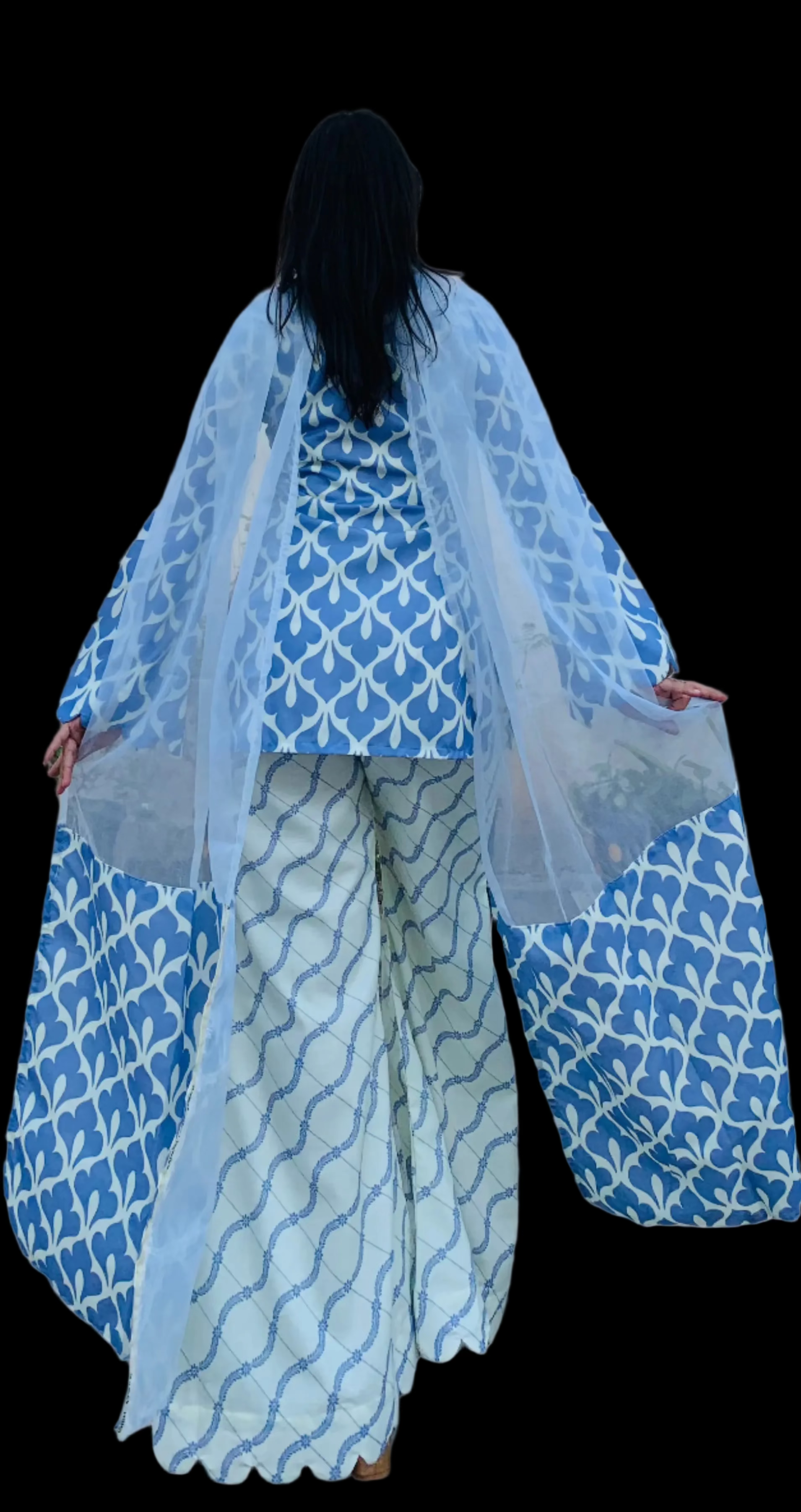 This 4-piece set of Honey Dual Complex features Organic cotton and a Digital Print. The stunning shade of Lilac, perfect for summers, adds an aesthetic touch to your outfit. Made with expert craftsmanship and quality materials, this set is definitely a Steal Deal. This 4 piece set of Honey Diagonal Digital Flip features an organic cotton material for a comfortable and environmental-friendly option. The digital print adds a unique twist, with a diagonal flip design that sets it apart from traditional prints. Finished off with bell bottom pants & Fine organza dupatta with broad borders ; this set is both stylish and sustainable.