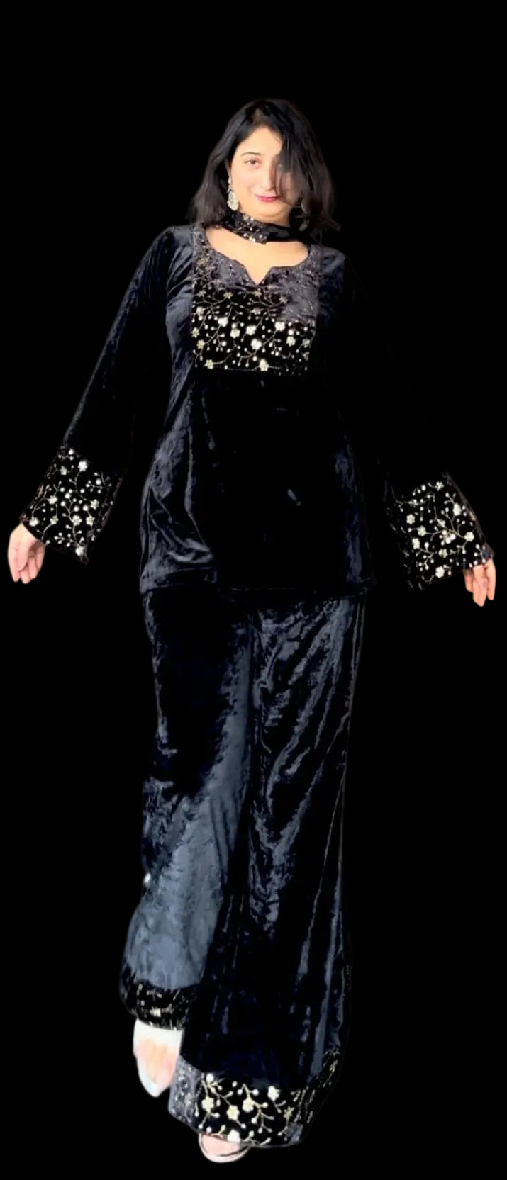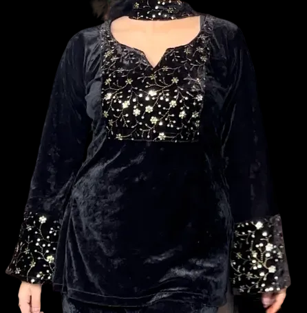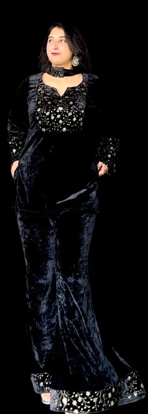 Introducing Honey the Glitsy Banger—a luxurious velvet piece designed to elevate your celebration wardrobe. Crafted from sumptuous velvet fabric, this versatile garment seamlessly transitions from intimate gatherings to grand wedding festivities. The expert construction ensures a refined silhouette that flatters every occasion, while the rich texture adds an undeniable touch of sophistication. Whether you're attending pre-wedding events, receptions, or festive celebrations, this statement piece delivers timeless elegance with contemporary flair. Perfect for those who appreciate quality craftsmanship and understated glamour.