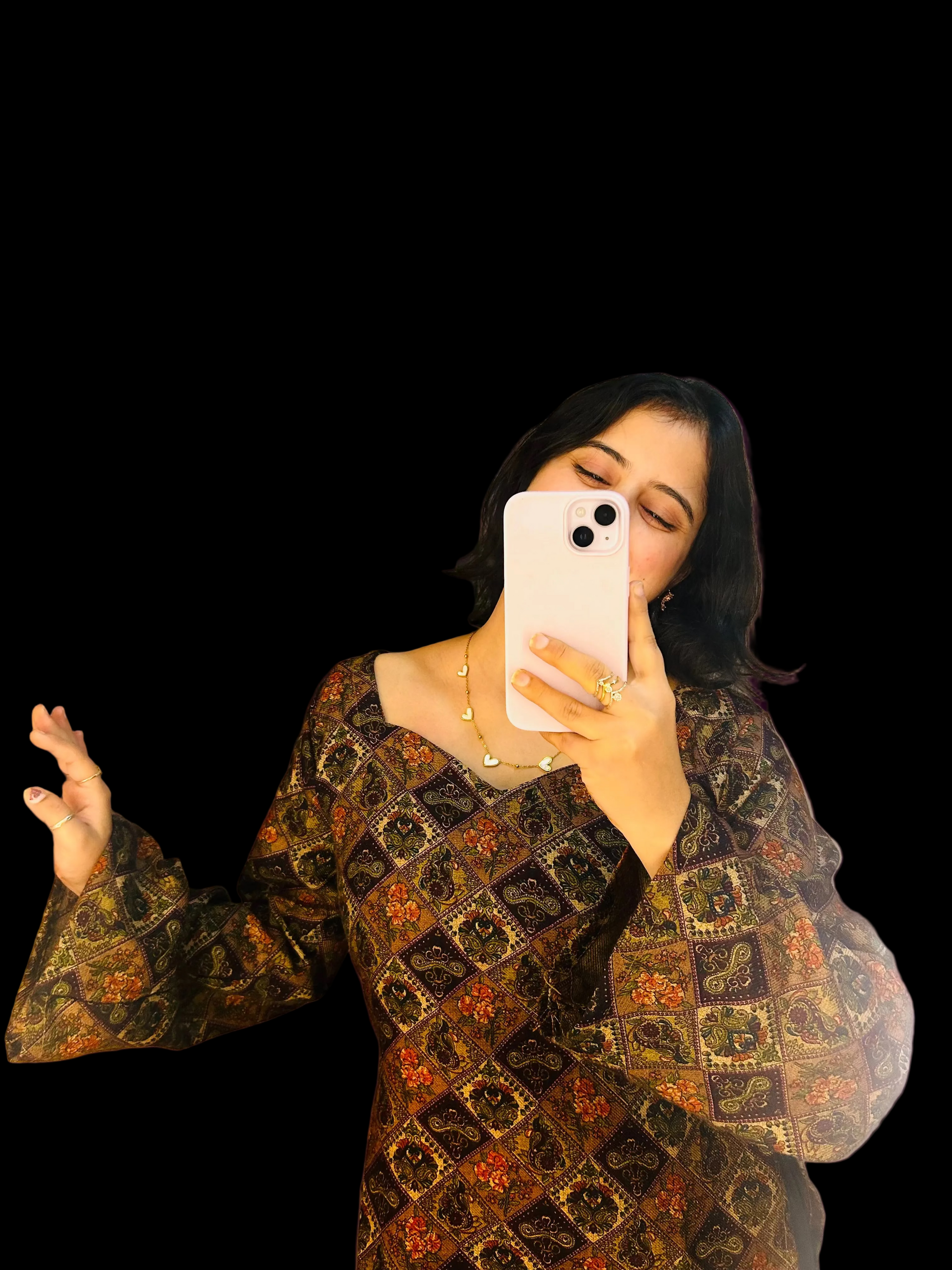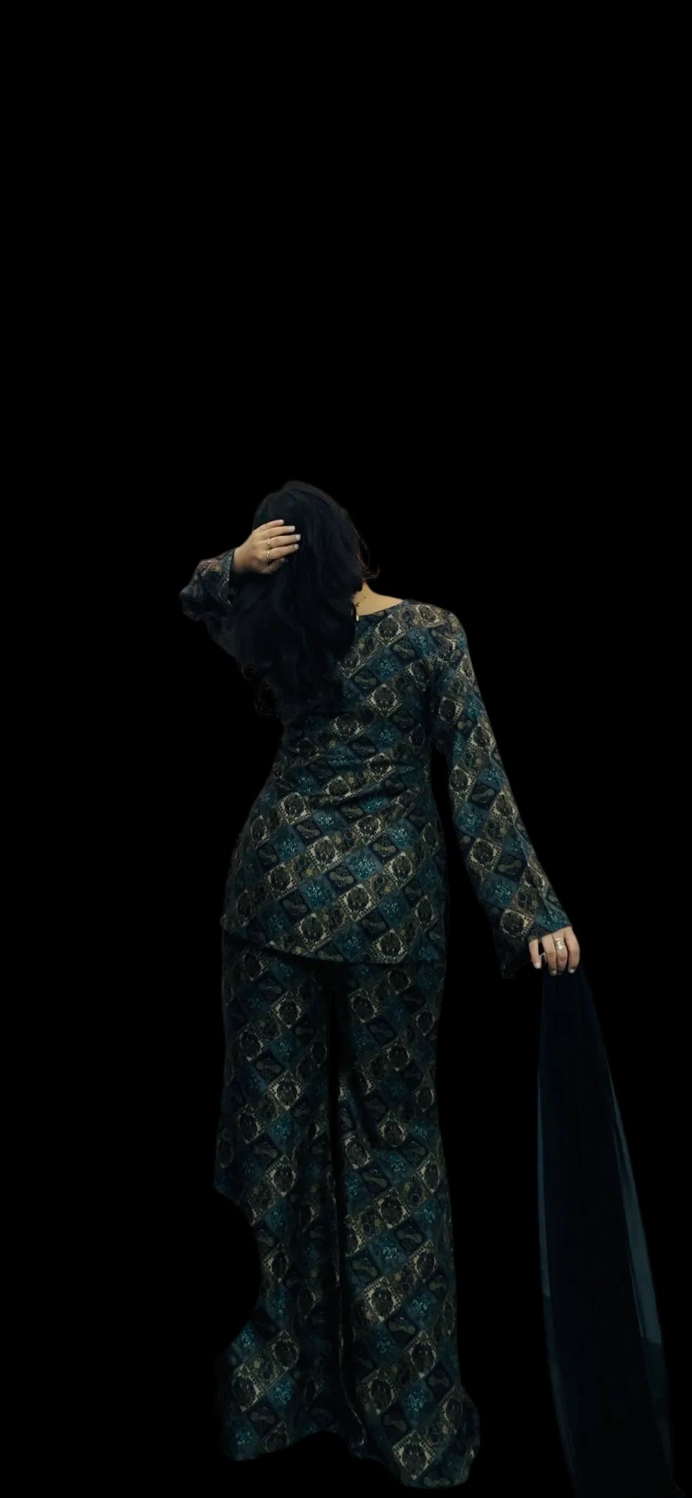 Elevate your ethnic wardrobe with this sophisticated 3-piece ensemble crafted from premium woollen pashmina. The set features a gracefully flared bell-bottom silhouette paired with an elegantly designed kurti showcasing Pakistani-style A-line sleeves that add refined movement and dimension. Complemented by a flowing chiffon dupatta, this collection seamlessly blends traditional craftsmanship with contemporary styling. Perfect for festive occasions, celebrations, or elevated everyday wear, the Honey The Innayra set delivers timeless elegance with superior comfort and luxurious fabric quality.