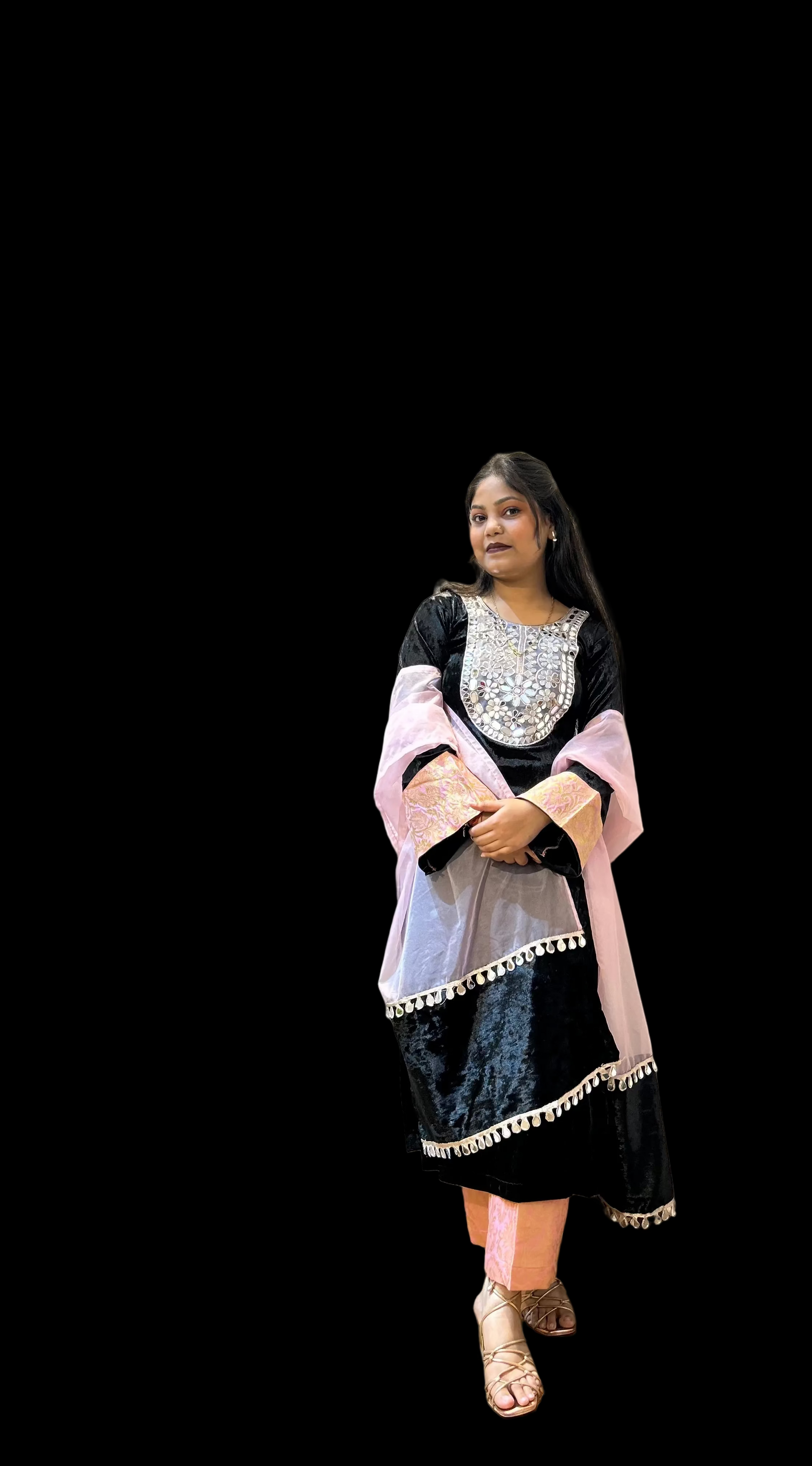 Introducing the Honey The Kaanch Brocade Velvet Duo—a thoughtfully curated three-piece ensemble designed for understated elegance. This set features a luxuriously soft ice velvet kurti with compression fit for a flattering silhouette, paired with intricately detailed brocade pants that add subtle sophistication. The organza dupatta, adorned with a refined border panel, completes the look with grace. Ideal for intimate gatherings and casual celebrations, this collection strikes the perfect balance between comfort and style, allowing you to make a refined impression without overwhelming the occasion.